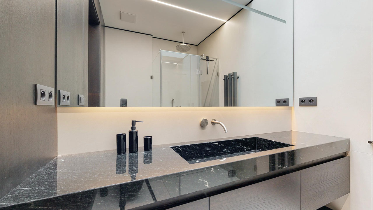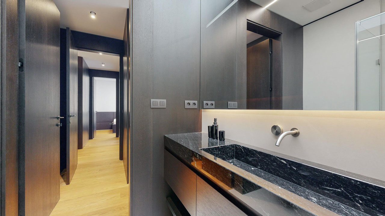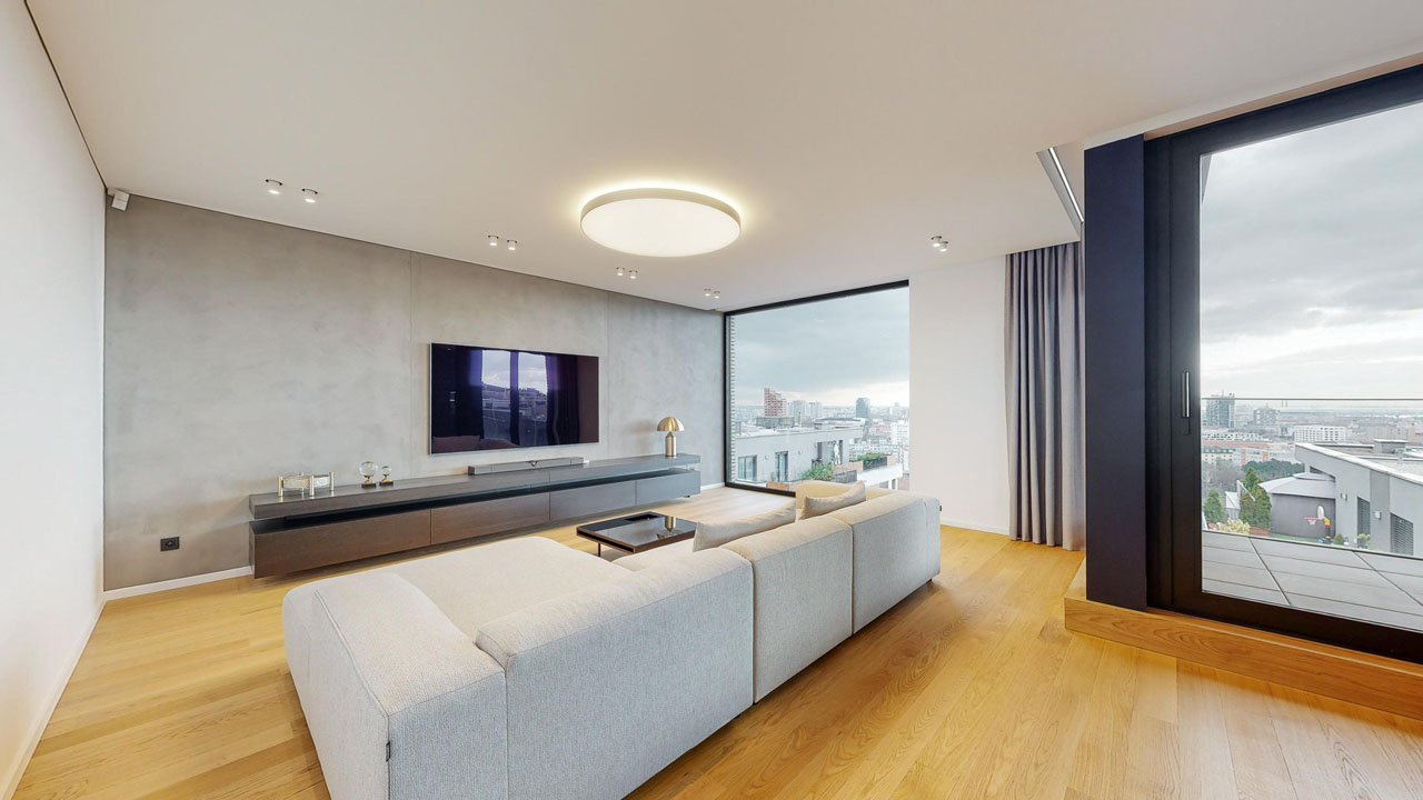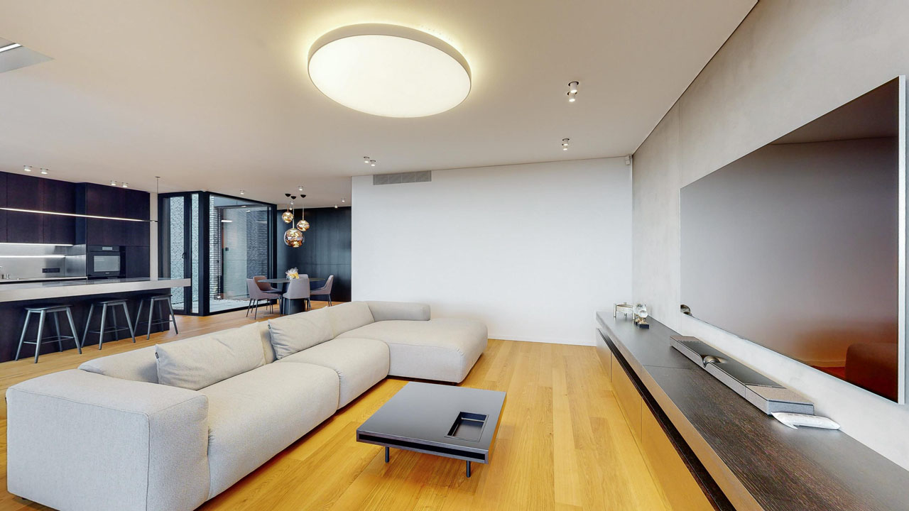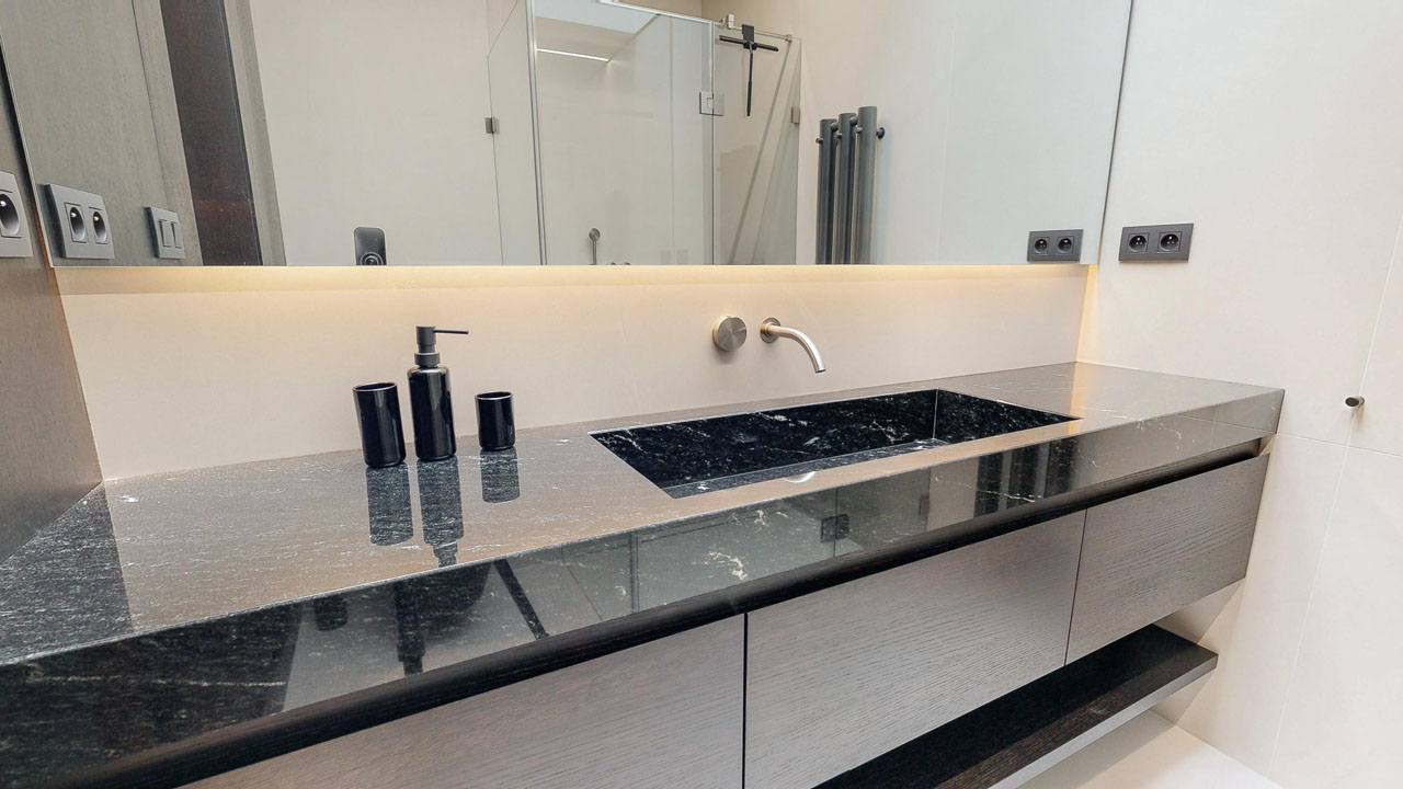 Comprehensive interior design tailored to the client's requirements. Atypical furniture supplemented with solitaires from Italian production.