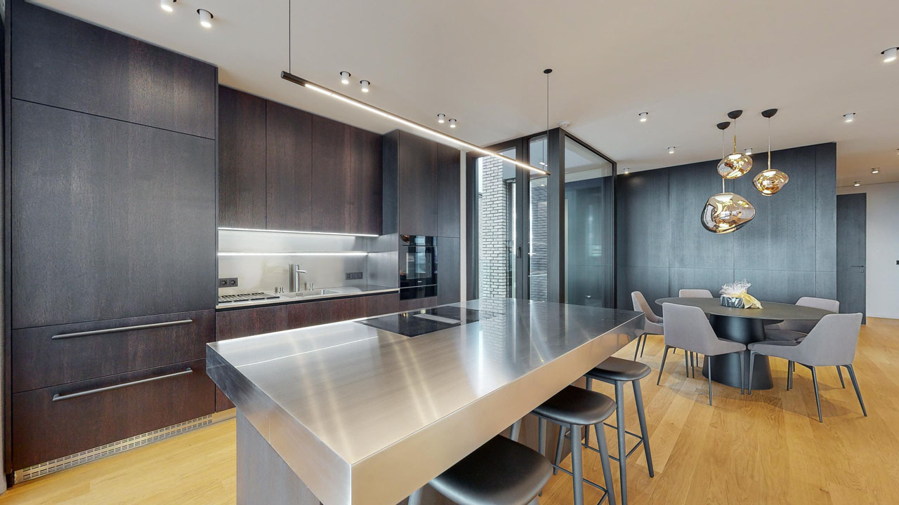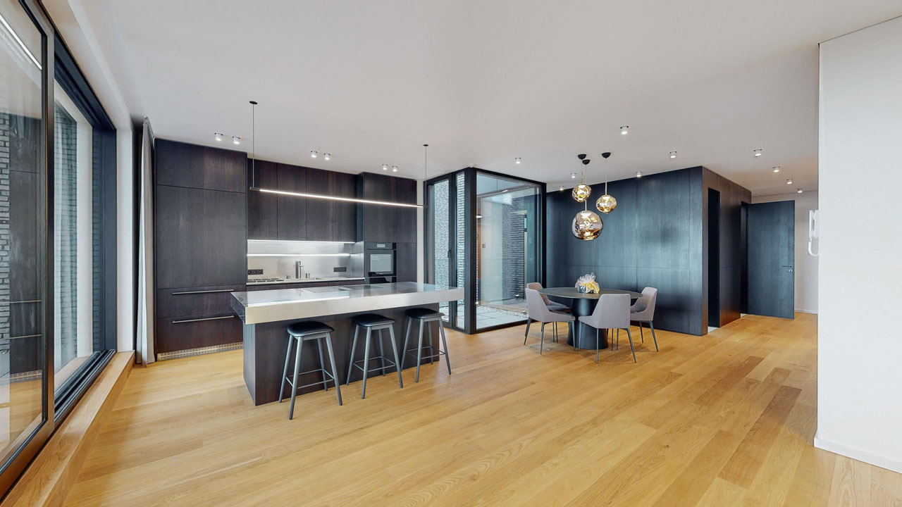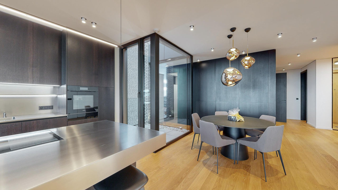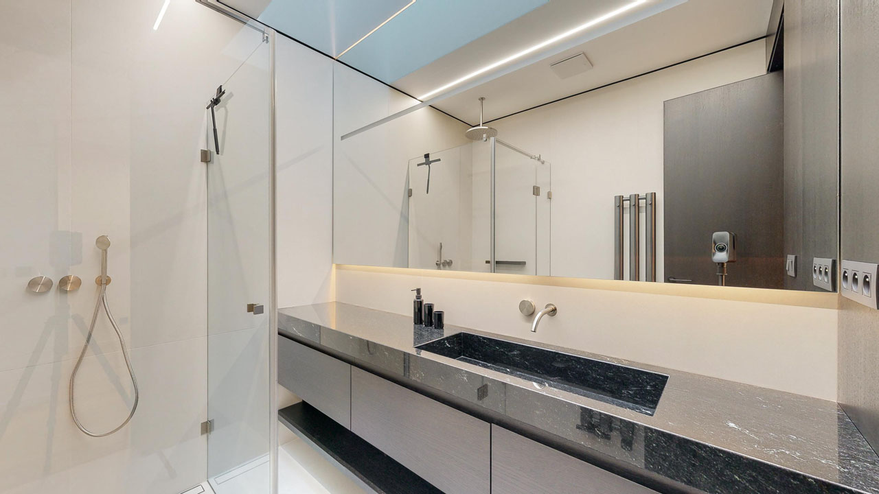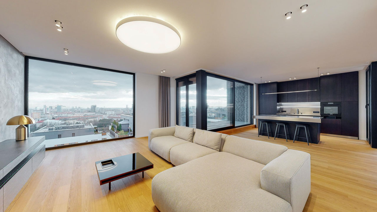 Comprehensive interior design tailored to the client's requirements. Atypical furniture supplemented with solitaires from Italian production.